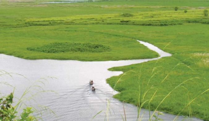 属于早期地球上最先出现的三种野生稻谷之一的Talay野生稻谷品种,在茵都基湖区内还广泛保存生长着。对从北极地区远道而来的候鸟群们来说,这野生稻谷品种也是保证它们能在这茵都基湖区内“衣食无忧”地栖息生活的主要原因之一。而在此地区内,流入这茵都基湖的河流溪水共有12条,它们流入湖内后,又顺着茵都基湖内的出水口——茵都基溪流出,在莫拱(Mogaung)县城附近与莫拱溪相汇合,于Sinbo村附近注入伊洛瓦底江第一峡谷。所以茵都基湖可以说是属于伊洛瓦底江流域的水系之一,每年雨季伊洛瓦底江内的一些鱼种为产卵繁衍后代,都会沿着这伊洛瓦底江及莫拱溪水道,进入这茵都基湖内产卵。所以茵都基湖在这大生态环境中,也是起着相当大的作用的。