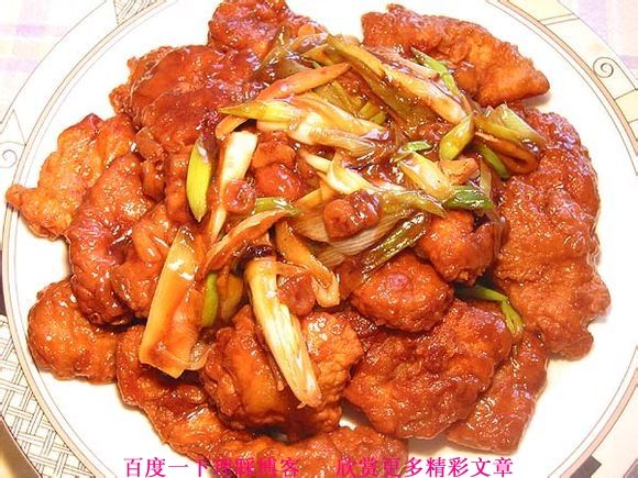 “西湖醋鱼”是浙江杭州传统风味名菜。此道菜选用西湖鲲鱼作原料,烹制前一般先要在鱼笼中饿养一两天,使其排泄肠内杂物,除去泥土味。烹制时火候要求非常严格,仅能用三四分钟烧得恰到好处。烧好后,再浇上一层平滑油亮的糖醋,胸鳍竖起,鱼肉嫩美,带有蟹味,道鲜嫩酸甜。 肉滋别具特色。