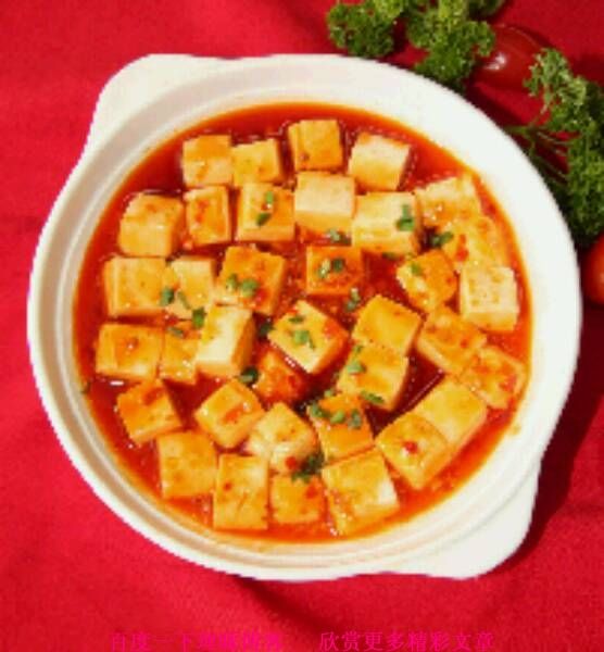 麻婆豆腐是我国八大菜系之一的川菜中的名品。主要原料由豆腐构成,其特色在于麻、辣、烫、香、酥、嫩、鲜、活八字,称之为八字箴言。