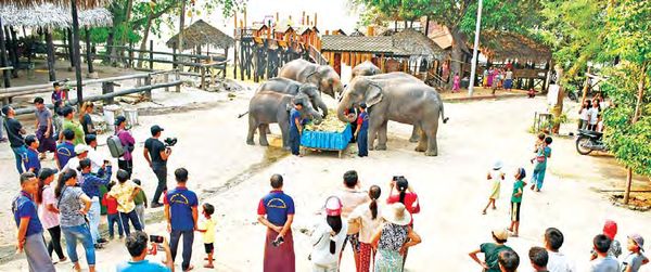 曼德勒省良吴县区伯林江岸大象营地泼水节期间接待众多的游客