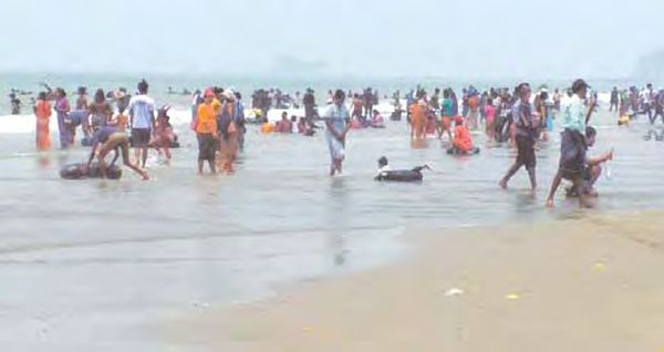 孟邦丹漂扎耶海滩地区泼水节假期游客众多游客