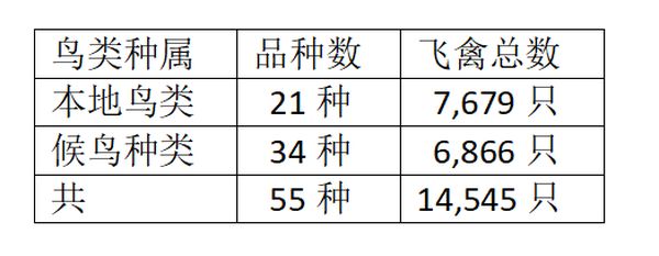 茵都基湖及其湿地地保护区候鸟及当地水鸟品种统计情况