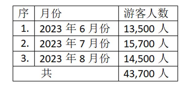 在6月份、7月份及8月份期间进入昌达海岸地区的游客人数如下表: