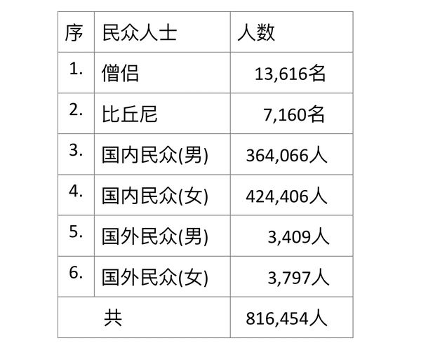 这一个月期间前来瞻仰、朝拜此大金塔的民众人数如下: