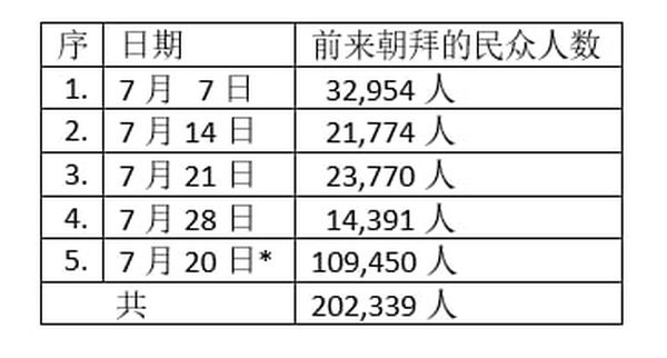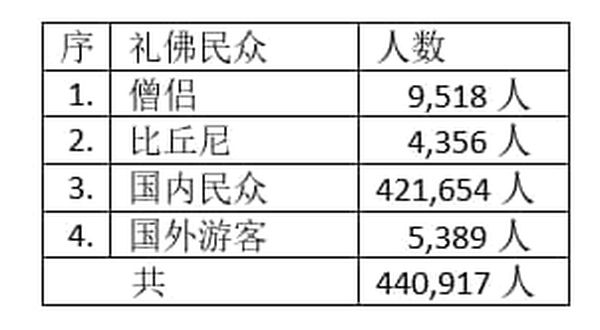 这7月份期间,前来朝拜这大金塔的僧侣、比丘尼及国内外民众人数如下表: