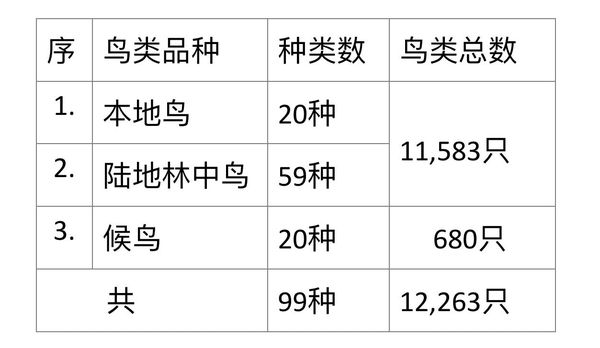 10月份下旬时莫允基湖地区统计到的鸟类总数: