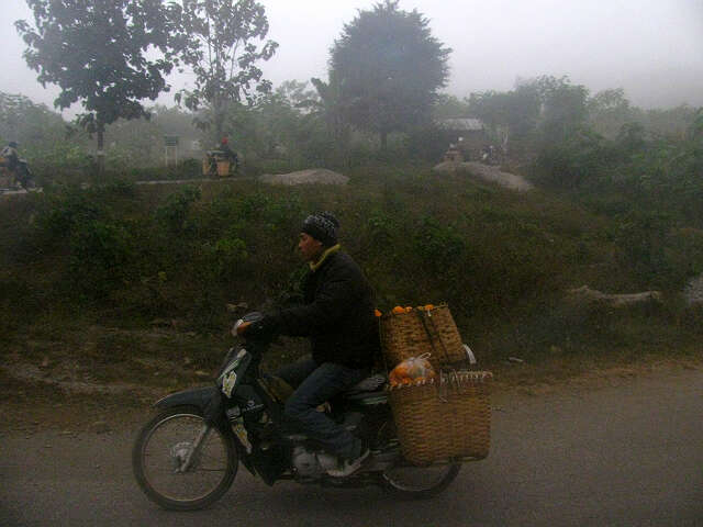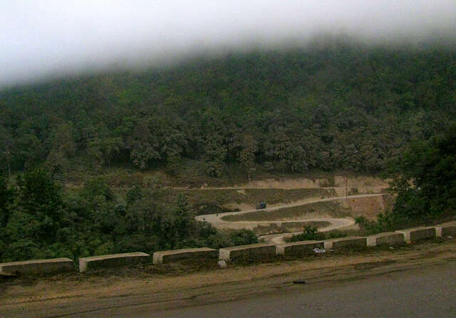 在固楷地区的高山,地形非常险要,山势又高,似乎比瑙俅等地的山势还高,我们的汽车蜿蜒而上,从最高处往下望去,蜿蜒的山路上,大卡车、大货车正在山腰上蜿蜒而上,脑子里顿时浮起七十年前的滇缅公路上,海外华人司机组成的南侨技工队伍,驾驶着货车,满载着盟国支援中国抗战的物资,也是这样的蜿蜒爬行在这山腰间般情景,只是今昔任务不同,那时是为中国抗日战争,如今却是为中缅两国人民的胞波友谊,互通有无、物资交流、川流不息。一派国泰民安景象。