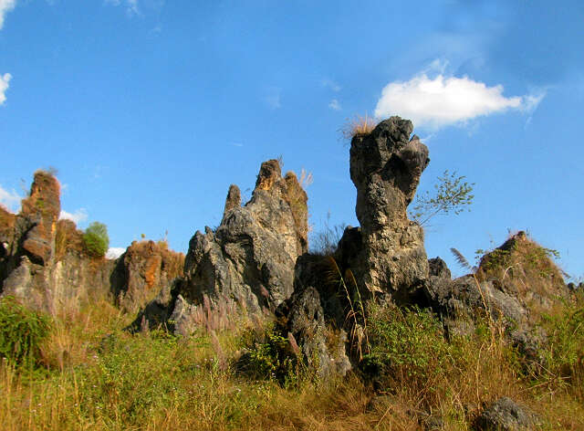 出了腊戍城,只在艾迪关卡办了手续,一路通行无阻,汽车在红土高原上奔驰,沿途风景无限美,突见一座山坡上,长着各种各样的石头,咦,缅甸也有小小小石林,当然,无论从面积上来讲,无论从宏观上来讲,它完全不及昆明的石林那种气派,唯一可说的,它们的造型像极了,据地质学家说,亿万年前,中缅边界一带都是汪洋大海,云南的石林,在亿万年前,也同样是在海底,由于海水的浸蚀、地壳的运动,形成现代的石林形状。说不定哪一天,考古学家们也会在中缅边界一带,发现数千年前的化石,又将进一步证明人类社会的文明进程。