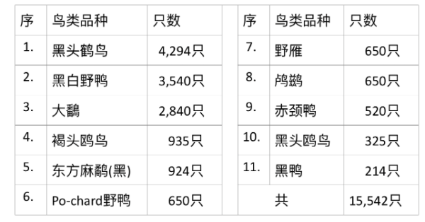 统计到的2万多只飞禽中,有 ¾ 是属于以上11个品种的鸟类,这也是一个特殊点了。