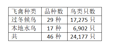 今年1月间统计到的过冬候鸟数据及本地水鸟数据与去年统计数据相比,本地水鸟类品种多了一种,水鸟总数多3,970只(头)。