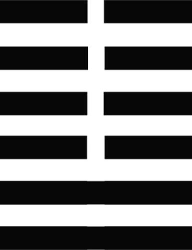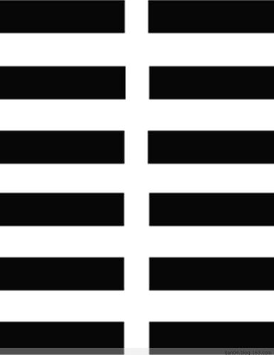 《周易》中每一种卦象,都由六个阳爻或阴爻组成,阳爻是平直的符号“—”,是属阳刚的,阴爻是中间断开的符号“ - -”,是属阴柔的。由下到上、从第一爻到第六爻,排列组合出了一个卦象。