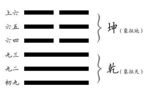 三个阳爻代表乾,也就是天,三个阴爻代表坤,也就是地。