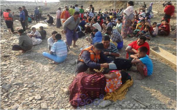3月13日晚8时,从皎漂市驶往实兑市的昂德昆渡轮,在皎漂市附近,受风浪吹袭,铁锚撞穿船身,渡轮进水沉没。船上载有226名乘客,男109人,女117人。海军、若开邦政府、警察、内航局、有关部门和消防局及附近村民前往施救,已经救出169人,(男104人,女65人)。捞获33具尸体,(1名僧人,2男,30女)。失踪人员尚在继续寻找中。