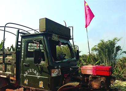 □在一个爆炸点附近,一辆农用拖拉机的挡风玻璃被震碎。