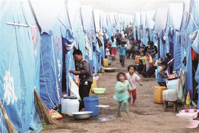 2013年5月30日,缅甸掸邦腊戌镇民众转移到紧急避难所。