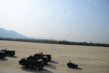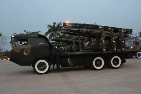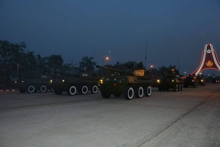 接受检阅的缅甸陆军坦克方队,基本上都是由中国制造的59D式改进型坦克。
