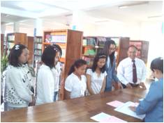 2015年3月31日,在金色阳光的普照下。腊戌明德学校为提高学生素质,得姜德明董事长得指示。由代校长姜鸿明先生、李翠芝老师、及初小部教师们带领着初中一年级(乙班)的学生,前往图书 馆里参 观。 未进图书馆前。学生们先向管理图书的匡丽国老师领取卡片,并购买借书卡。今天学校开放图书馆目的。是让学生可以博览群书,自觉吸取其 精华 ,扩大自己 的知识面,提高学生素质,培养学生能力。因为小学生如果只光凭课堂上学的知识是远远不够的,而学生在课堂上接受的教育往往是被动的,而到图书馆则是自由的。所以学校特别在建德馨楼时,就已做好图书馆的准备。因此,为学生们营造一个合适的阅 读环境就十分有必要的。我们不会忘记馆里的图书,是由祖籍国云南省侨办和缅丽伊甸园分批赠送的。