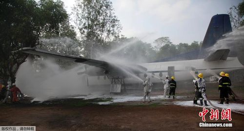 缅甸纪念第69个消防队节 演习扑灭起火飞机