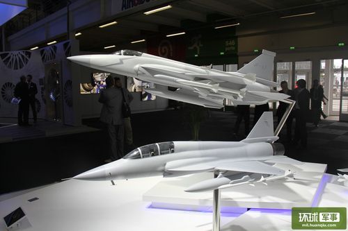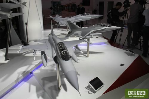 中航工业展台以模型为主,单座、双座版的枭龙战斗机模型一同出现在展台上。(摄影:刘昆)