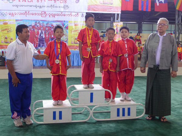 为庆祝奥林匹克日,曼德勒武术协会于6月20日至21日,在曼德勒‘巴图’运动场,连续举办2015年度中小学生武术比赛。21日上午举行表演及颁奖典礼。中国驻曼德勒总领事馆靳仪鳞副总领事、曼德勒体育学校校长、曼德勒体育部副局长、曼德勒缅中友协会会长、曼德勒福庆孔子课堂校领导、学生家长等应邀参加了活动。