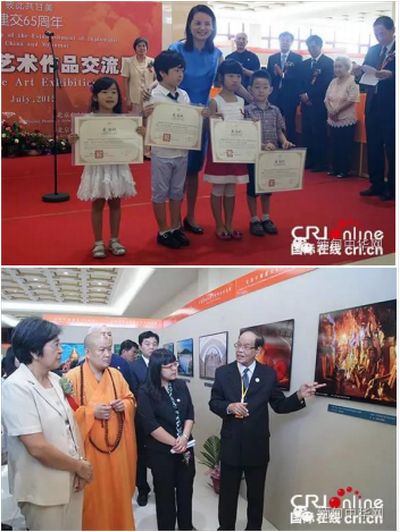 展览共分为四部分,分别为缅甸摄影图片展、中缅优秀艺术作品展、中缅服饰展和中缅青少年绘画展,充分展示了中缅两国文化的多姿多彩和民间的友好往来。