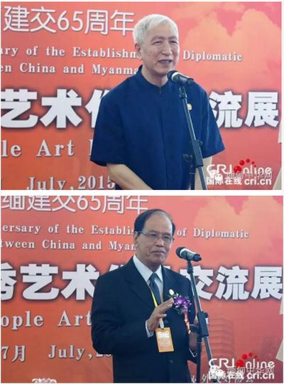 作品交流展在京开幕国际在线消息(记者 李鷐): 2015 年 7 月 1 日,为庆祝中缅建交 65 周年,“中缅优秀民间艺术作品交流展”在北京市八大处公园举办了开幕式。