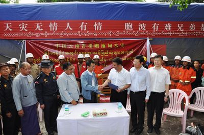 捐赠仪式首先由曼德勒计划与经济部部长吴昂展致辞,他说中国与缅甸胞波情谊深,一方有难八方支援,之前在缅甸达贝金发生地震灾难时中国也曾伸出温暖之手,今日缅甸遭遇水灾之祸,中国又一次捐赠灾民所需要的物资。对于云南省政府的赈灾他表示衷心的感谢。