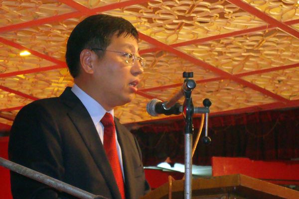 首先,由缅甸华商总会会长吴继垣先生代表缅华各界侨团致辞,接着,洪亮大使致辞表示非常感谢缅甸华人华侨历来对中国驻缅大使馆的工作支持。洪亮大使于7月26月到任,适逢缅甸各地遭受洪灾,当即马不停蹄前赴灾区慰问,代表中国政府和人民捐赠救援物资,送去中国政府和人民对缅甸人民的关怀和慰。至到今天才得以接受缅华各界的欢迎宴会。