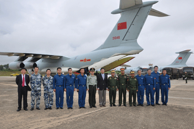 中国军队派遣两架伊尔76运输机运送救灾物资,包括毛毯、发电机、帐篷等。
