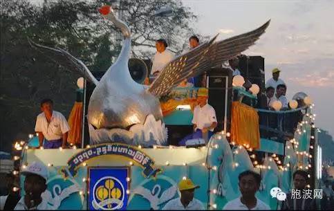 每当隆重的节庆、布施会、庙会,最主要的当然是泼水节,市区内大街上。便出现一个个的移动舞台:彩车花车!将一辆大货车,全身上下‘包装好’,上面是一个靓丽的舞台,有供乐队演奏,还为舞蹈演员提供最佳移动舞台!该移动舞台后面,还拉有一辆附加小车,专门拉一发电机,为整个‘舞台’提供电源。