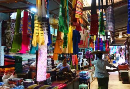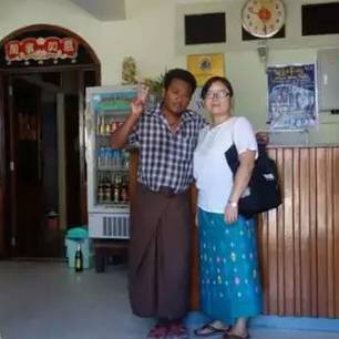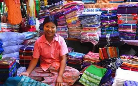 逛了几次市场,最后我在市场买了一条缅甸女性穿的筒裙,缅甸语叫做“特敏”,男性穿的叫做“隆基”,其实都是一块布,只不过穿着方式打结方式不同。老板娘推荐我买和昂山素季穿的一样的特敏,就是图上老板娘手上这条。