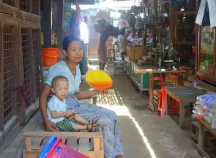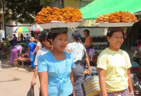 缅甸女子的头顶功超厉害,如果你走在缅甸的乡村街道,这样的情境是常见的。这是在市场不同区域通道里拍的,瞧地上还是土的呢~够原生态了吧~