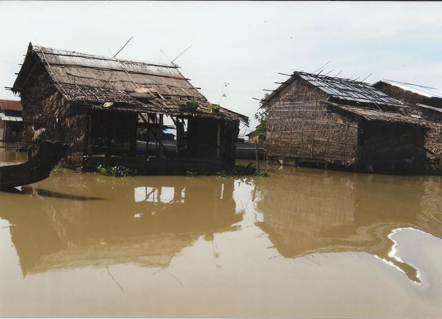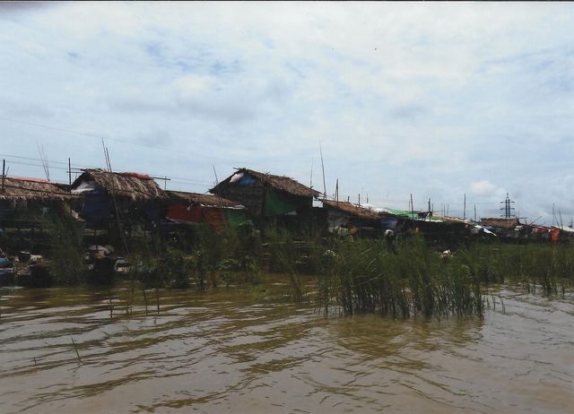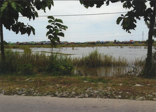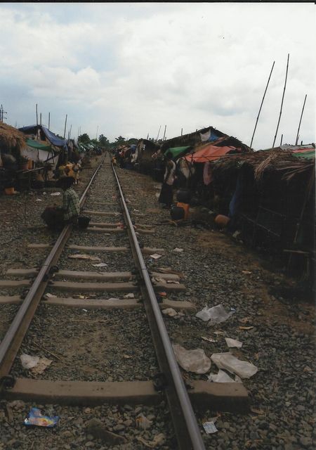 15,远望灾民们在铁路旁边搭建临时住处,近处是变成汪洋的蹈田