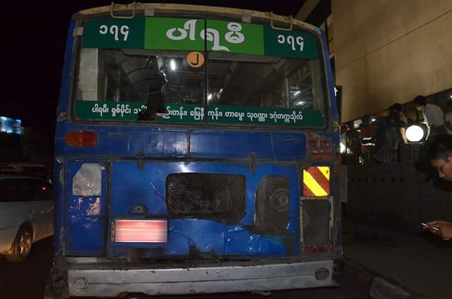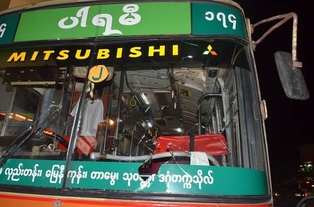 11月2日晚7时,在仰光市 原淡汶大圆圏 (现改为五叉路口,设交通指挥灯),发生一起暴徒对一辆174号公交车司机和售票员用铁棍殴打,并纵火焚烧公交车事件。警方已立案侦查。仰光西部警局警觉图表示,这是一起团伙作案,案件发生源头在玛仰贡市镇,将侦查重心放在玛仰贡地区。此次作案为六个暴徒,已要求各市镇警局协助审查当地流氓份子。
