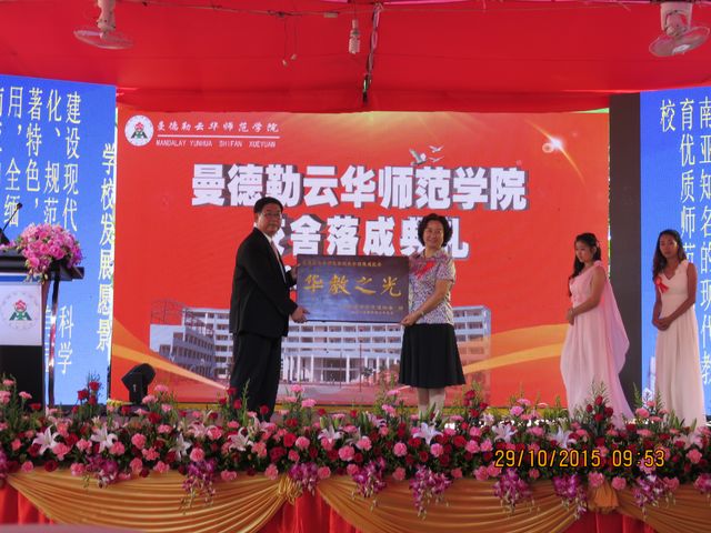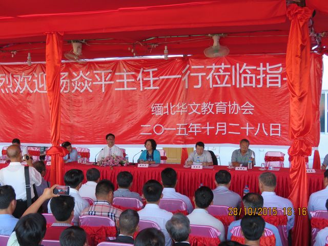 10月28杨主任一行抵达曼德勒,与缅北华文教育协会所属的250多所会员学校代表举行了座谈。10月29日,参加了曼德勒云华师范学院校舍落成典礼。10月30日抵达密支那,在密支那期间,瞻仰了远征军墓地;慰问看望了两位远征军老兵;参观走访了密支那育成学校;参加了密支那云南同乡会新会馆落成典礼。