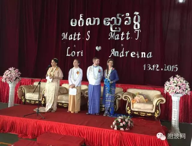 2015年12月13日,在位于曼德勒东郊的伊洛瓦底国际学校运动场举办了一场简单而隆重的婚礼,学校教师、部分师生及家长见证了这一庄重的时刻。婚礼的主角是该校两对外籍教师,其中“蓝对”是小学老师,美国人Matt Smith (新郎)和Lori Balck(新娘),“黄对” 是美国新郎Matthew Tifford 和委内瑞拉新娘 Andreina Candallo。