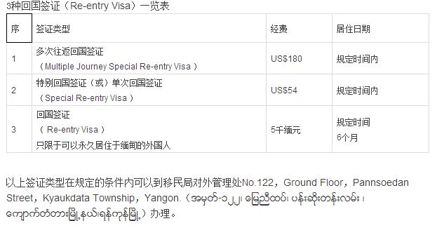 日前,缅甸移民与人口部宣布,从2016年1月11日开始,缅甸政府将实施新的入境签证方案。具体为:将目前的6种入境签证(Entry Visa)增加到12种,并增加回国签证(Re-entry Visa)3种。