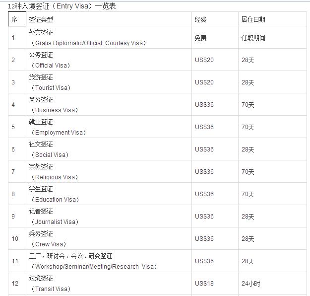 入缅签证收费新规定