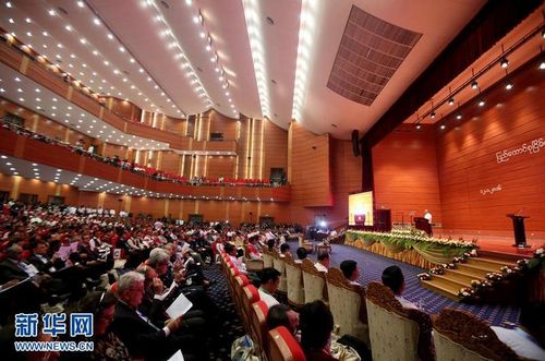 1月12日,在缅甸内比都,全国民主联盟主席昂山素季(右)与副总统赛茂康握手。缅甸联邦和平会议于当地时间12日上午召开,标志着首轮全国和平政治对话启动。本轮对话预计持续5天,将于16日闭幕。缅甸自1948年独立以来,境内一直存在大小数十支少数民族武装。在缅甸政府认可的15支少数民族武装中,仍有7支尚未签署全国停火协议。新华社发(吴昂摄)