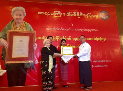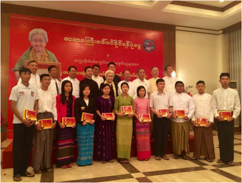 2016 年 1 月 27 日上午 8 点,粟秀玉基金会第三届缅甸优秀贫困大学生助学金捐赠仪式在中国驻缅甸大使馆文化处举行。粟秀玉教授、中国驻缅甸文化处田善亭文化参赞、缅甸中国友好协会吴盛温昂会长及协会其他成员、中国-缅甸友好协会代表和缅甸各界华人华侨代表出席了该活动。
