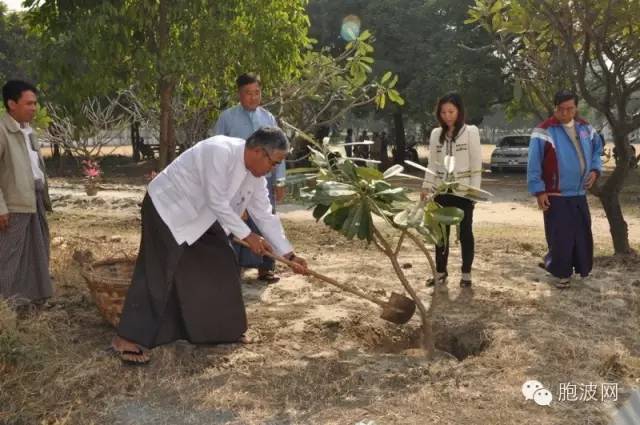 最后曼德勒缅中友协会副主席、福庆孔子课堂校长李祖清介绍了赴华深造的各类奖学金,鼓励大家学好中文,到中国深造。 学员们在学校大楼左侧的花园里,靳仪麟副总领事、吴博敏主席、吴佐登特校长、李祖清校长等一起种下了象征着汉语学习的“德祐瑟嘎瓣”(缅语,意为“汉语花”),这棵根植于缅甸传统医科大学的“汉语花”是福庆孔子课堂的第35棵。 据悉,缅医大是缅甸唯一一所传统医科大学,除学习缅甸传统草药学、临床学、人体学外,针灸学也是四年课程当中的必修课。汉语班在缅医大开班,汉语国际教学将服务缅中传统医学的交流与合作。在“一带一路”的背景下,汉语国际的推广以及缅中传统文化的交流将进一步促进缅中友好关系。