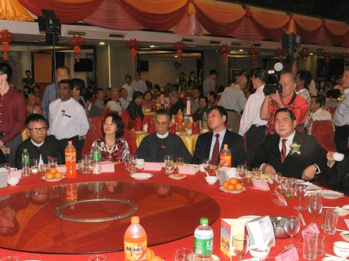 宴会开始,缅华各侨团准备了精彩的文艺节目。筹委会正副主任以及洪亮大使、吴丁乌荣誉主席、吴盛温昂主席和全体演员合影留念。