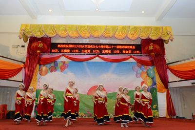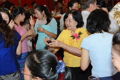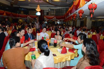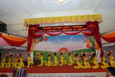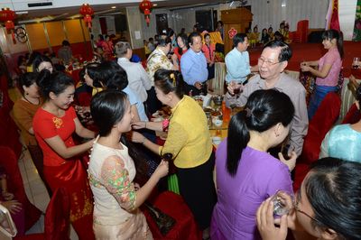 缅华妇女协会于三月八号下午六时假座梅花皇宫大酒家举盛大联欢宴会,热烈庆祝国际三八妇女节暨该会成立七十周年会庆,中国驻缅甸大使馆大使夫人王雪鸿暨大使馆姊妹们、王晓初主任、张鹏秘书、蒋芳秘书及使领馆领导们,出席晚会的还有缅甸女企业家协会代表和缅华社会贤达,以及各侨团代表、缅华妇女协会理监事和会友们,大家欢聚一堂。