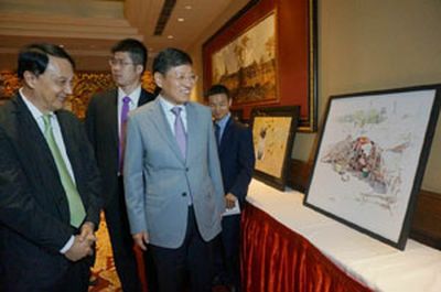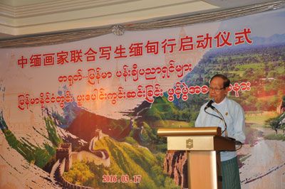 2016 年 3 月 17 日,中缅画家联合采风缅甸行活动启动仪式在仰光香格里拉酒店举行。中国驻缅甸大使洪亮、仰光省议会议长吴丁貌吞、中国美协副主席王明明、缅中友好协会主席吴盛温昂、仰光文化大学副校长吴妙都拉等贵宾出席了启动仪式,参加采风活动的中缅画家、缅中友协代表、驻缅使馆外交官和中缅主流媒体共约 60 人参加了活动。