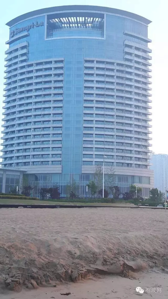 一切都是那样的让人兴奋,甚至‘震撼’!香格里拉五星级大酒店真不愧是国际一流宾馆,高大的楼房,现代化的设施,一流的服务!让人觉得生活在那里有点飘飘然,简直如仙境。但是脚步却不因此而停留,要赶快出去,去看大海!这不是来海边最重要的‘意图’或‘内容’吗?好不容易,才从高楼大厦的酒店找到通往海边的小门,走出去,踩着软绵绵的白沙,呼吸着由大海吹过来风,突然一股寒意袭来,‘海风’不是都热乎乎的吗?突然才意识到,这不是缅甸,不是南方,是北方,是北方的清凉海滩。