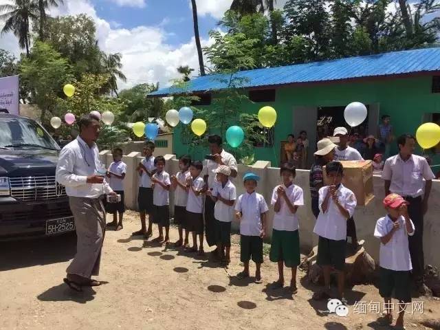 学校落成剪彩当天,苏焕光以及缅甸华侨联谊会的部分工作人员来到学校,庆祝学校落成,还为当地的孩子们送上贴心的小礼物。