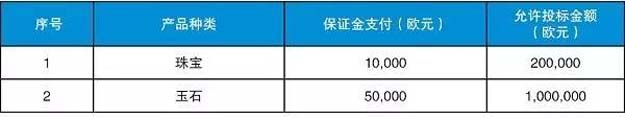 四、在支付最低保证金后,根据珠宝种类不同,国外买家将被允许最多投标20次。
