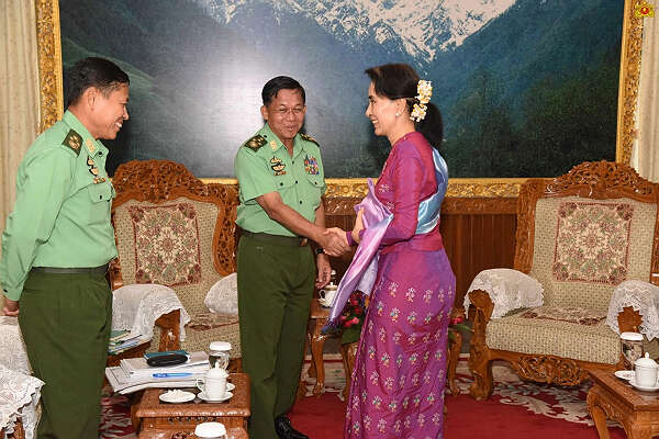 杜昂山素季与敏昂莱大将就重要事务会谈二时半