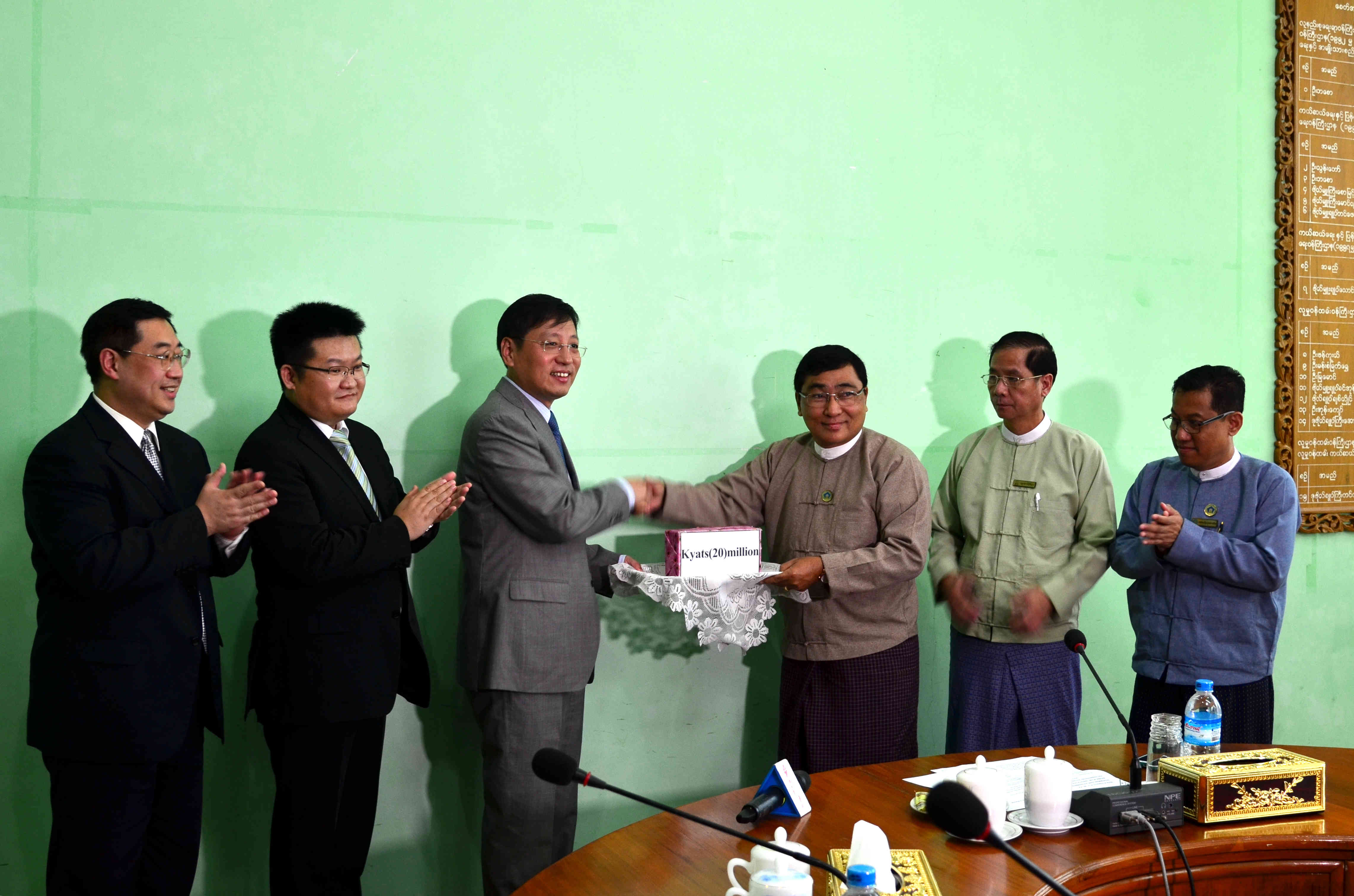 8月24日,驻缅甸大使洪亮在内比都会见缅甸社会福利和救济安置部部长温妙埃博士,并出席“向缅甸水灾地区提供赈灾救助”捐赠仪式。洪亮大使和中国国家电力投资公司、华为公司等中资企业代表向缅甸水灾灾区民众共捐赠4000万缅元,温妙埃部长接受了捐款,这笔善款将由该部用于开展水灾赈灾救助工作。