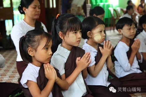 供奉袈裟,法师开示,信众认真听讲,亦有人认真在做笔记,更有三、四岁的幼小稚子,恭敬聆听,让人对缅甸这个佛教国度有了更加深刻的感受,比之听旁人说,亲身经历则更为震撼。供僧结束,法师带领回向功德,三声“sadhu”,顶礼三拜,回向众生,愿一切众生,安乐无苦。